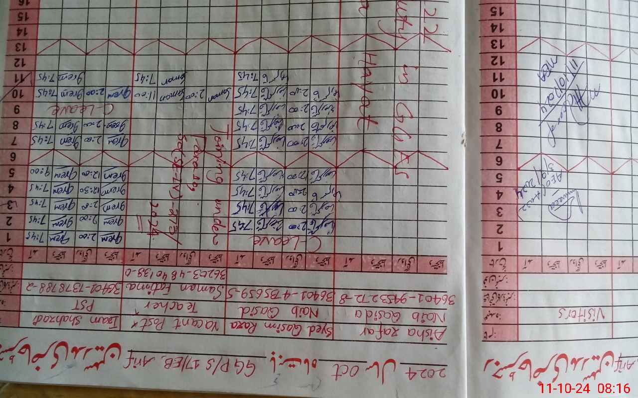 | Monitoring Date: 11-10-2024 | Start Time: 11-10-2024 08:15 AM | End Time: 11-10-2024 08:50 AM | Name of MEA: MU**** HA**** | |