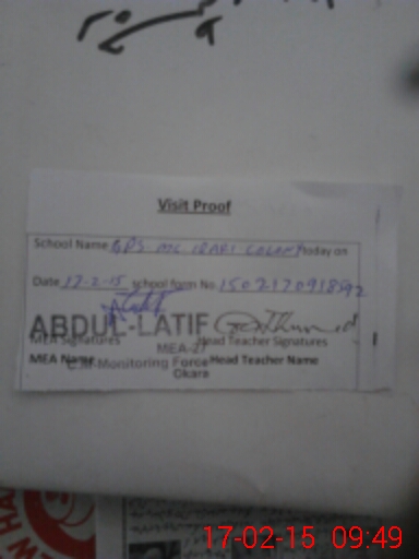 | EMIS Code: 39320967 | Name of School: GPS MC QARI COLONY | |||