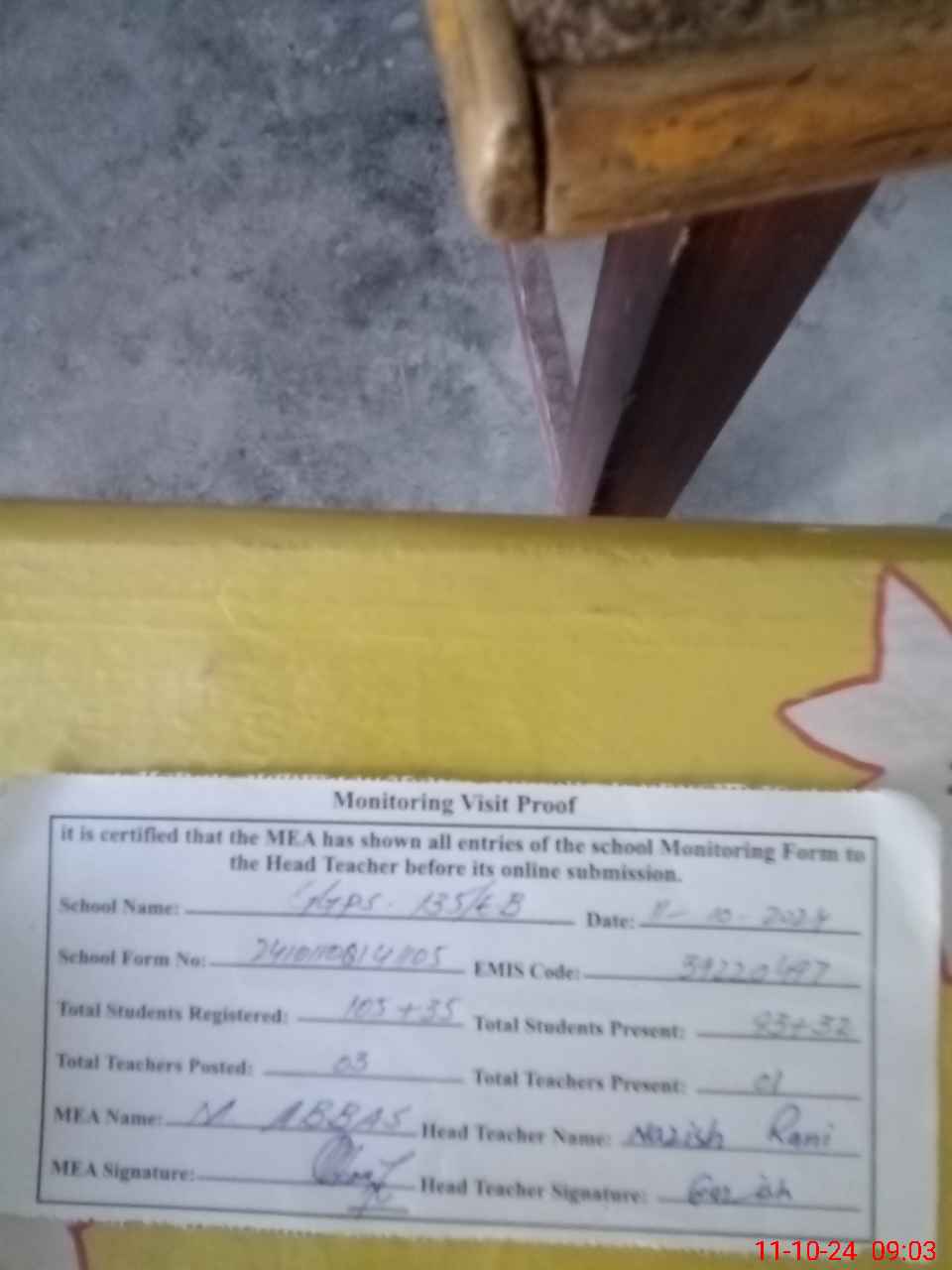 | Name: NA**** RA**** Designation: (School Headmaster's/Headmistress's) PST Phone/Cell Number: 03**** |