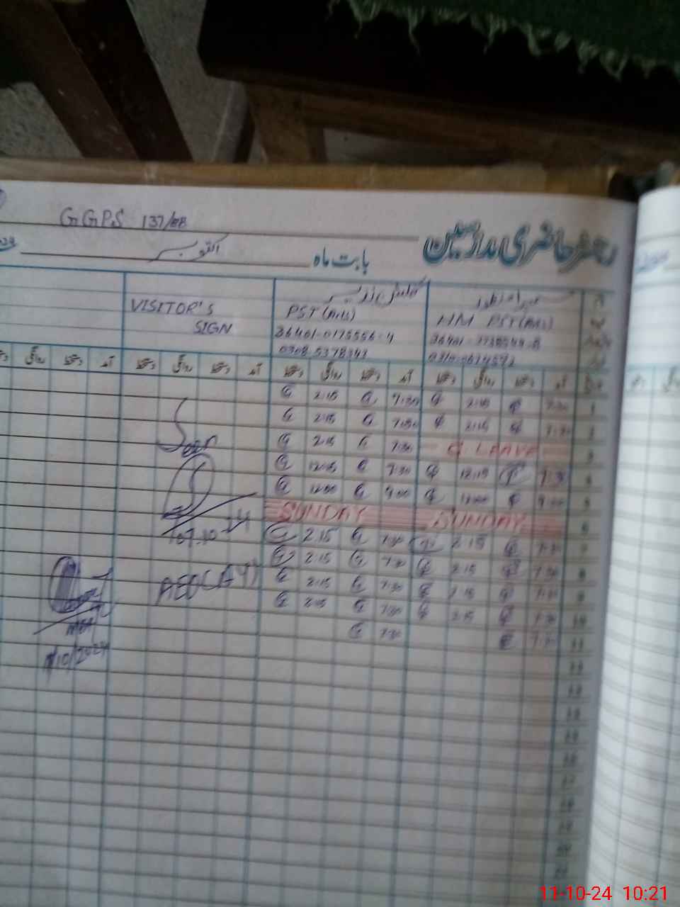 | Name: SU**** MA**** Designation: (School Headmaster's/Headmistress's) PST Phone/Cell Number: 03**** |