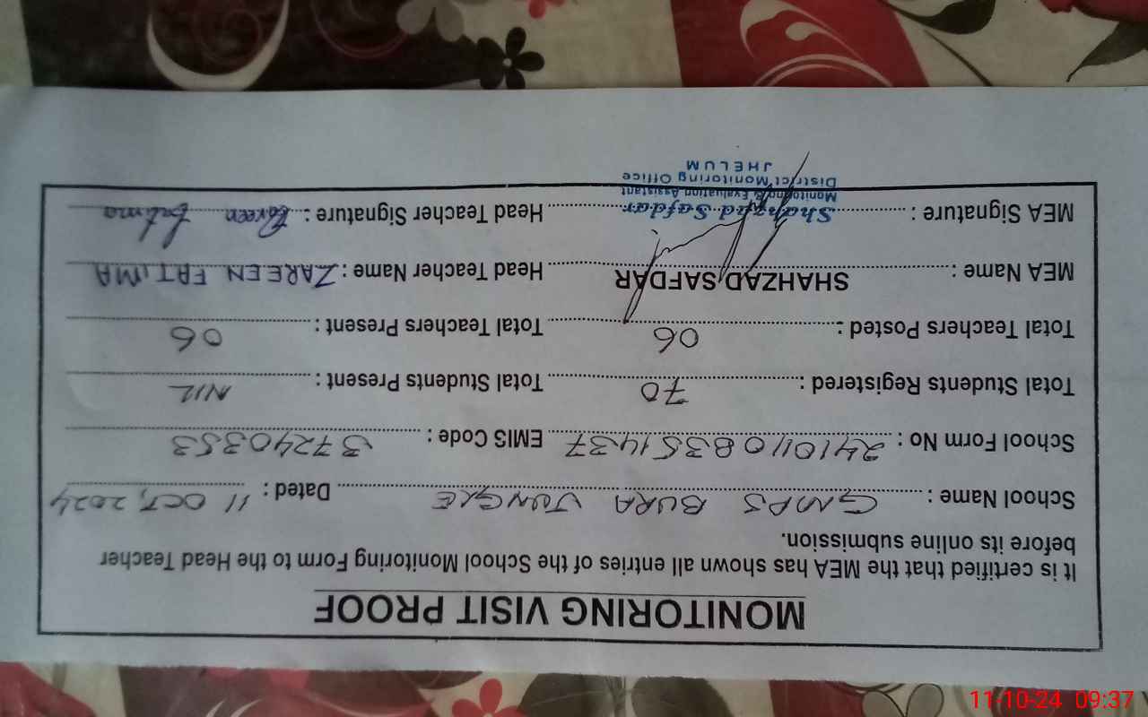 | Certified that this School was Inspected by the Undersigned MEA/DMO Today and the Information Stated Above is as Per Record. | |||||