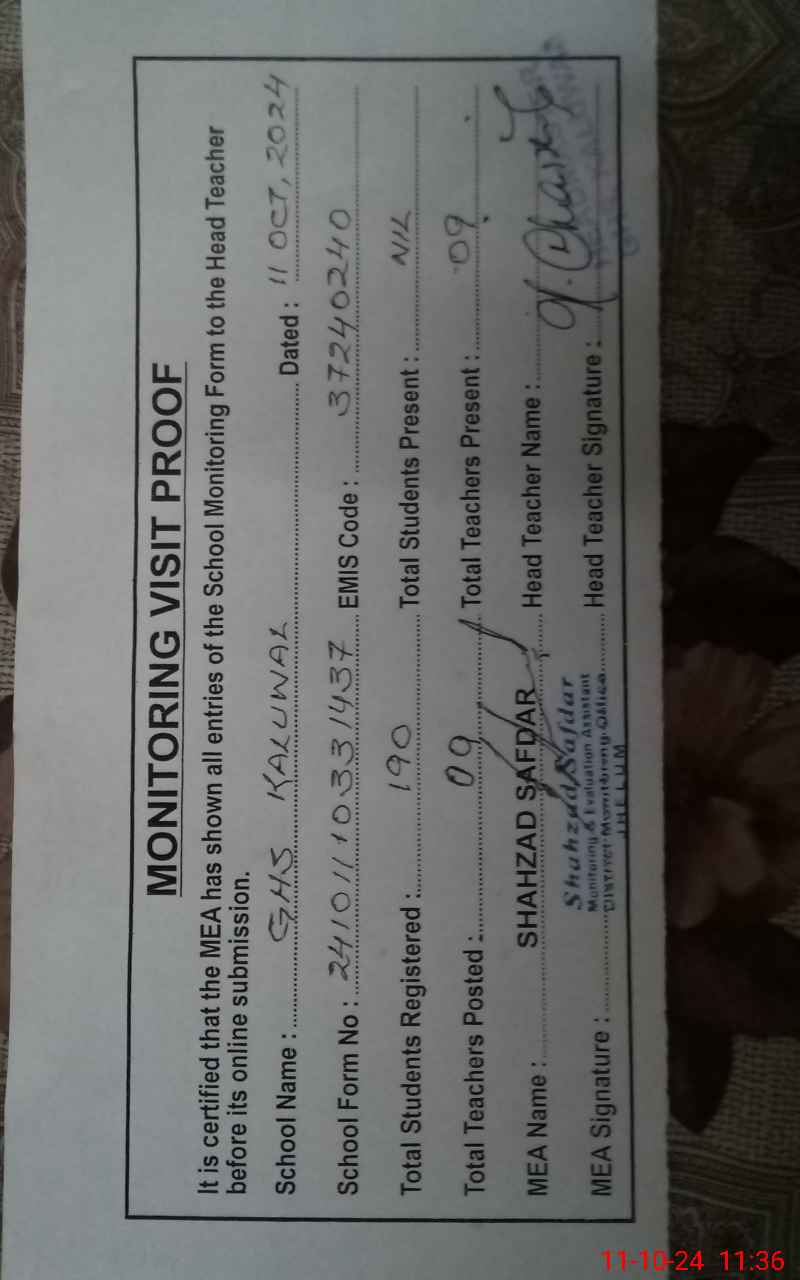 | EMIS Code: 37240240 | Name of School: GHS KALUWAL | |||