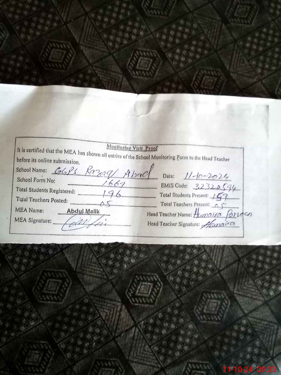 | EMIS Code: 32320594 | Name of School: GGPS RAZZAQ ABAD | |||