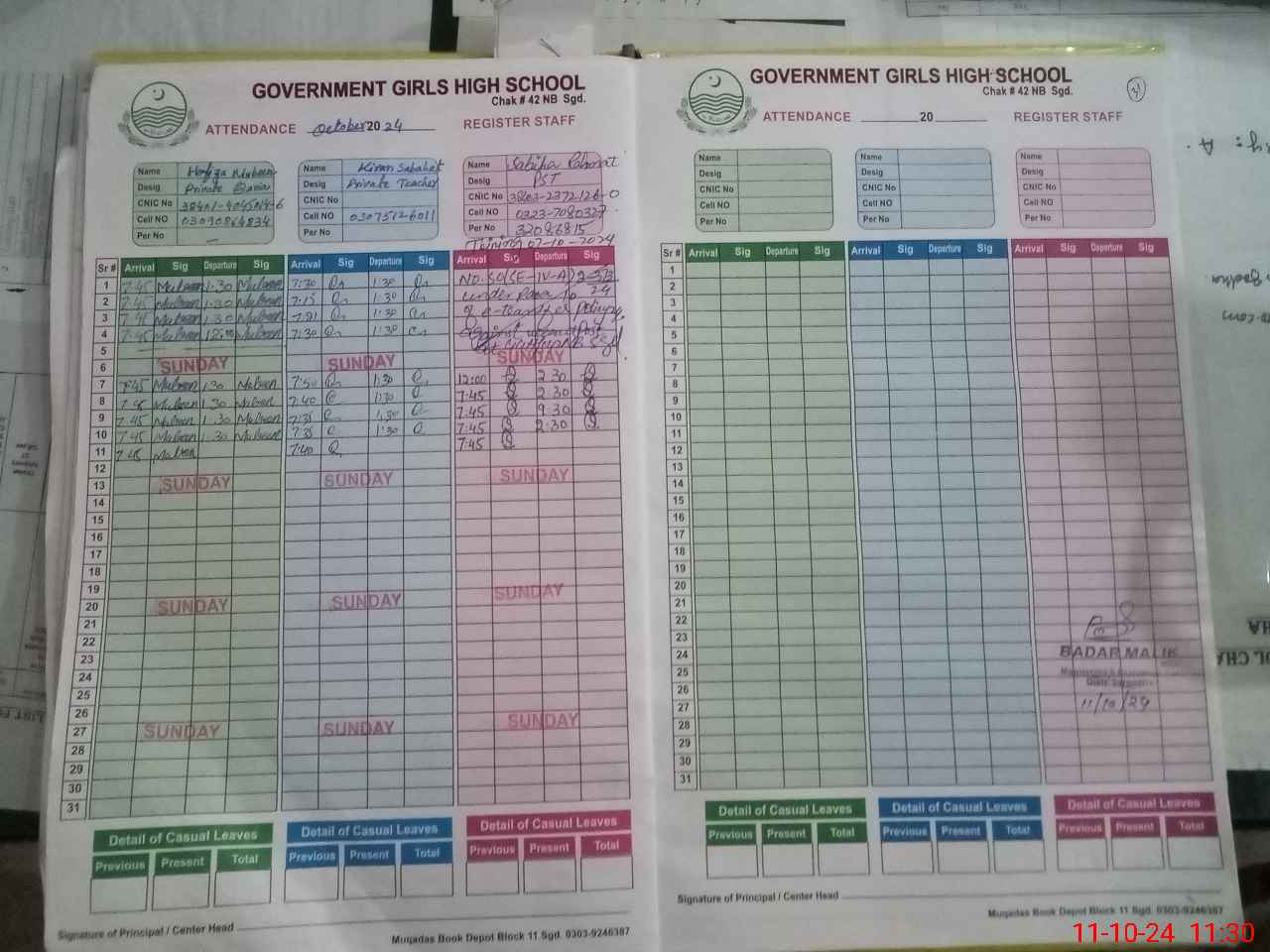 | CNIC | Full Name | Designation | R/C | Absence During Last Calender Month |