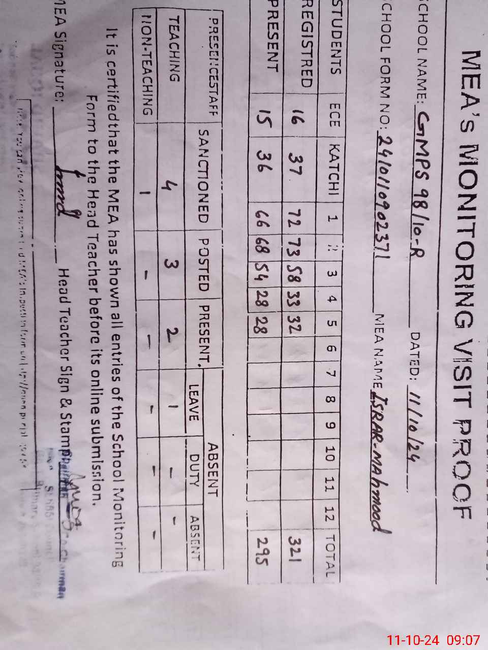 | EMIS Code: 36440567 | Name of School: GMPS 98/10-R | |||