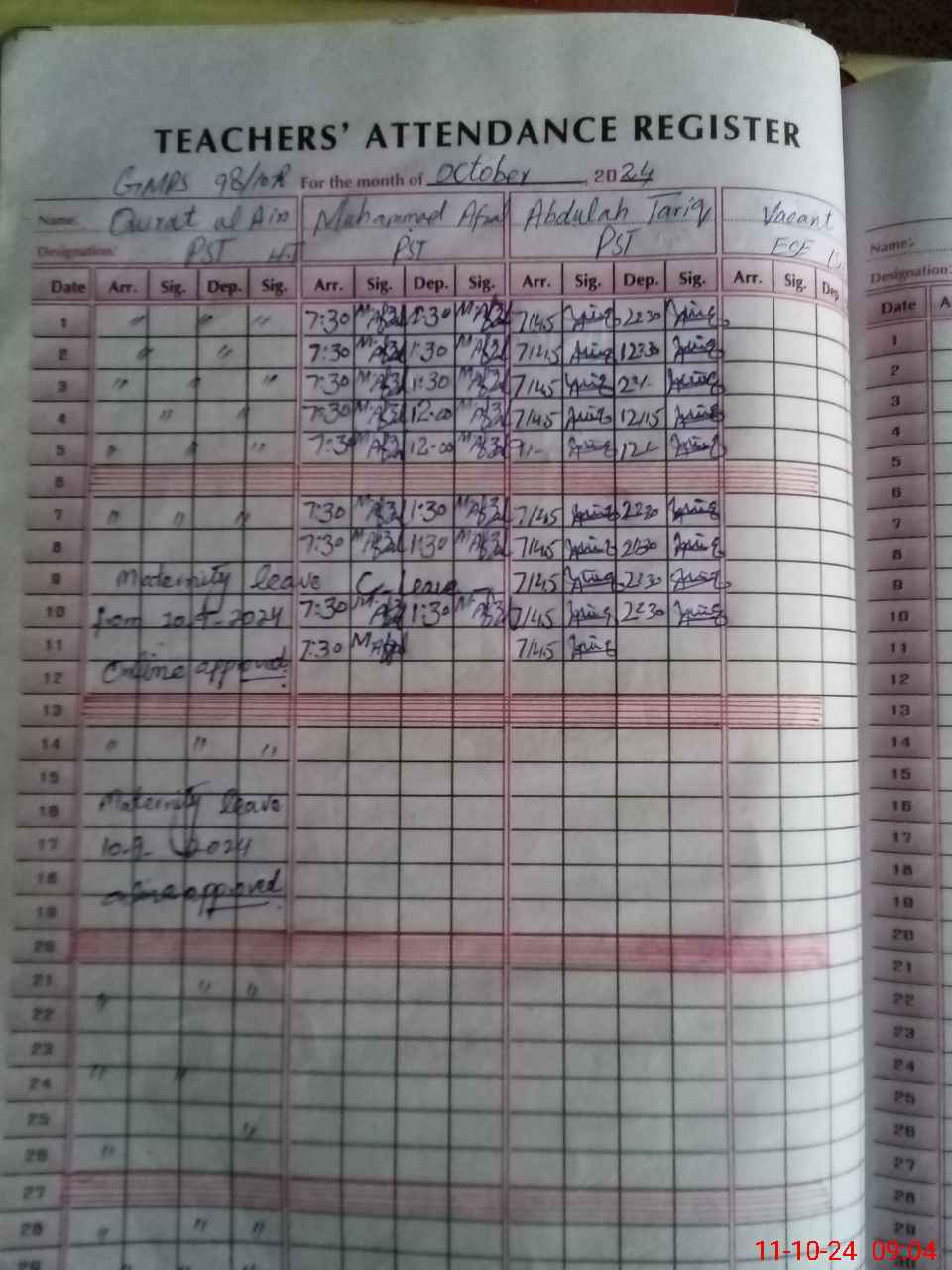 | 36**** | Qu**** UlAi**** | PST | Regular | 0 | 0 | 0 | 0 | 0 | 0 | 0 | 0 | 0 | Maternity |