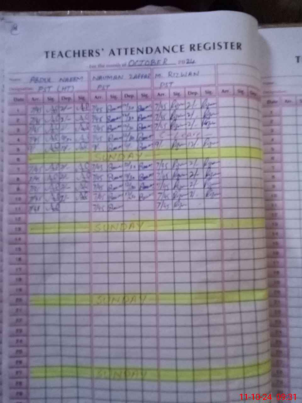 | CNIC | Full Name | Designation | R/C | Absence During Last Calender Month |