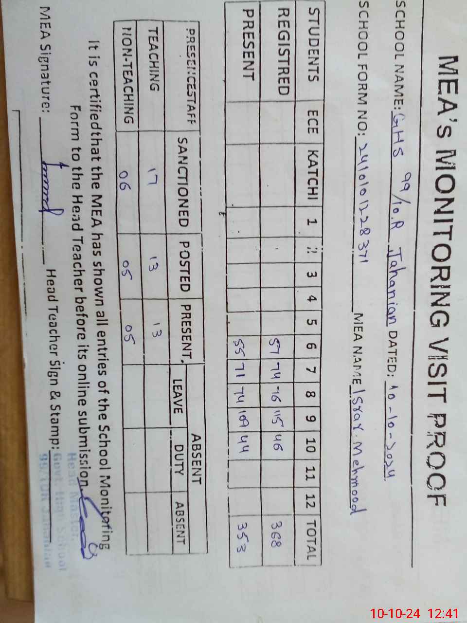 | EMIS Code: 36440031 | Name of School: GHS 99/10-R, JAHANIAN | |||