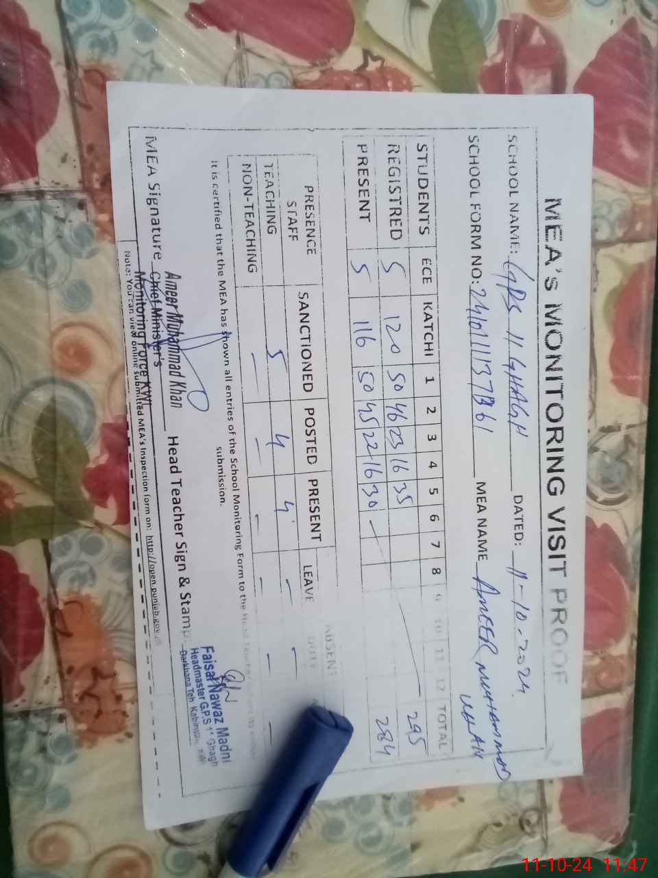 | EMIS Code: 36410283 | Name of School: GES 11 GHAGH, P/O 25 PUL, ABDUL HAKIM | |||