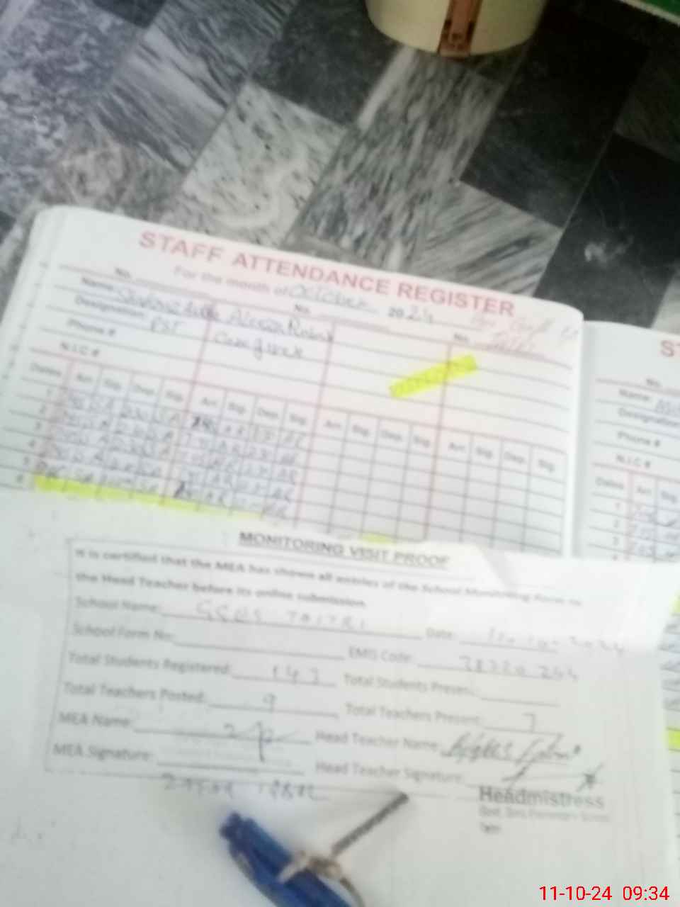 | Attendance Register | Head Teacher | MEA with School | Visit Proof |