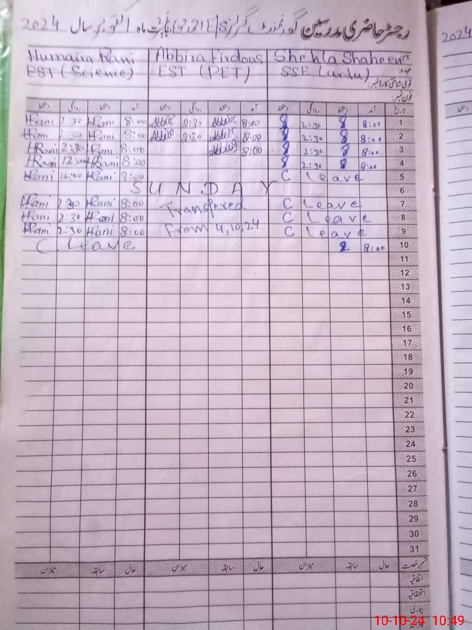 | Name: Sh**** Sh**** Designation: (School Headmaster's/Headmistress's) SSE Urdu Phone/Cell Number: 03**** |