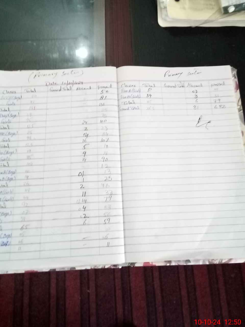 | No. of Students Present - Male | 50 | 0 | 29 | 23 | 14 | 25 | 3 | 11 | 0 | 0 | 0 | 0 | 0 | 155 | ||