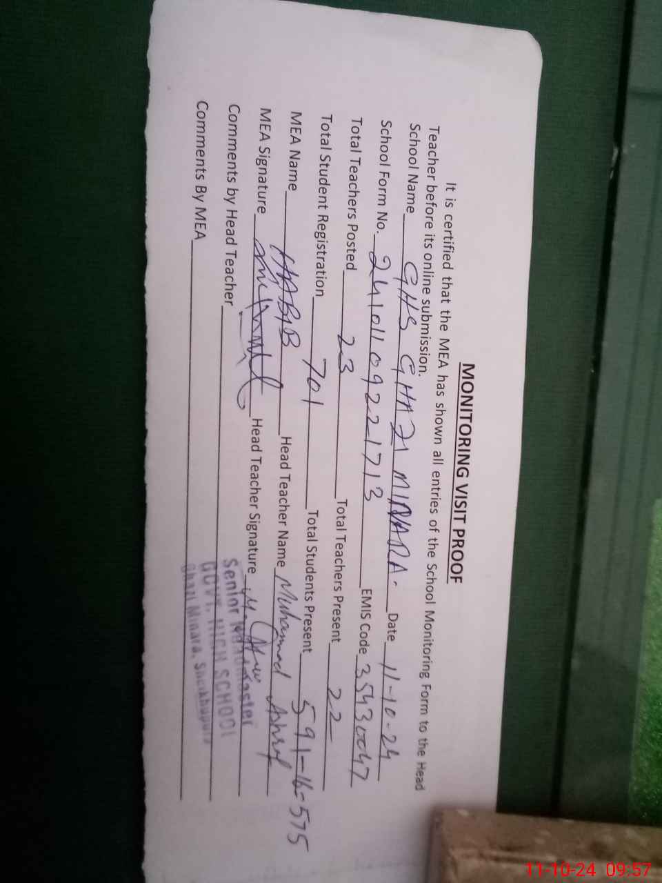 | EMIS Code: 35430047 | Name of School: GHS GHAZI MINARA SHEIKHUPURA | |||