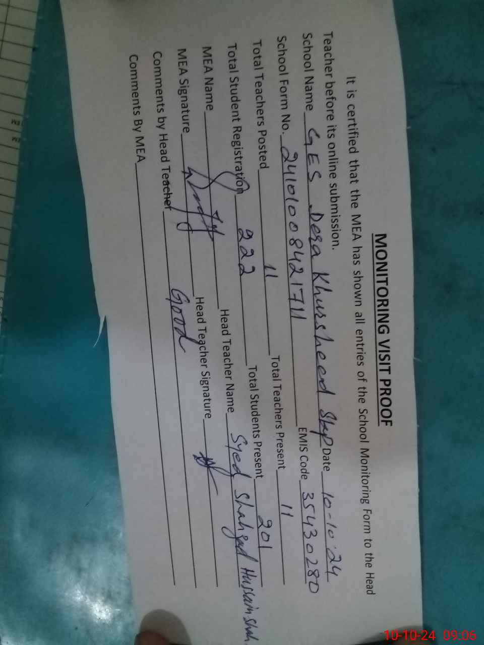 | EMIS Code: 35430280 | Name of School: GES DERA KHURSHEED HIRAN MINAR | |||