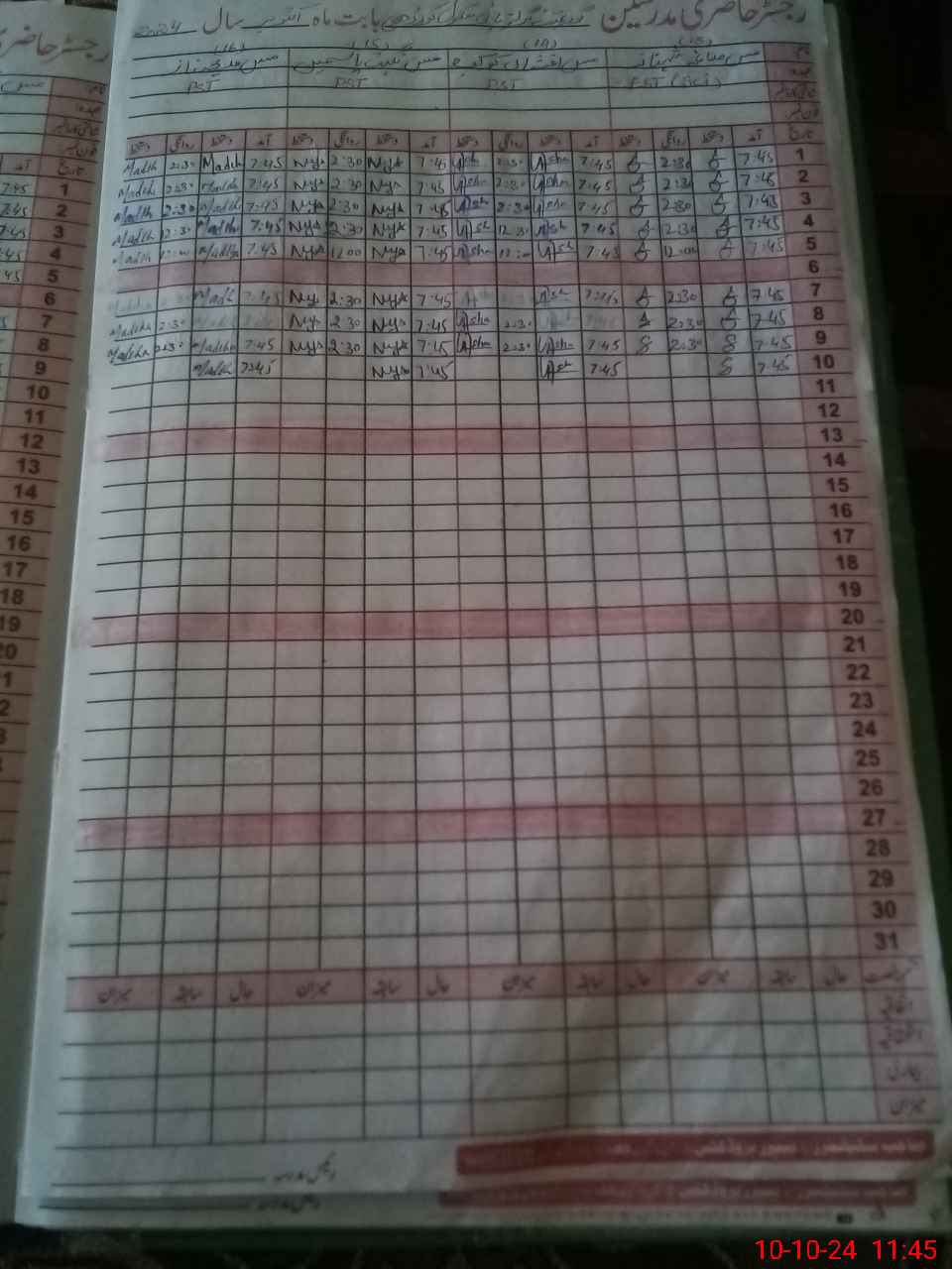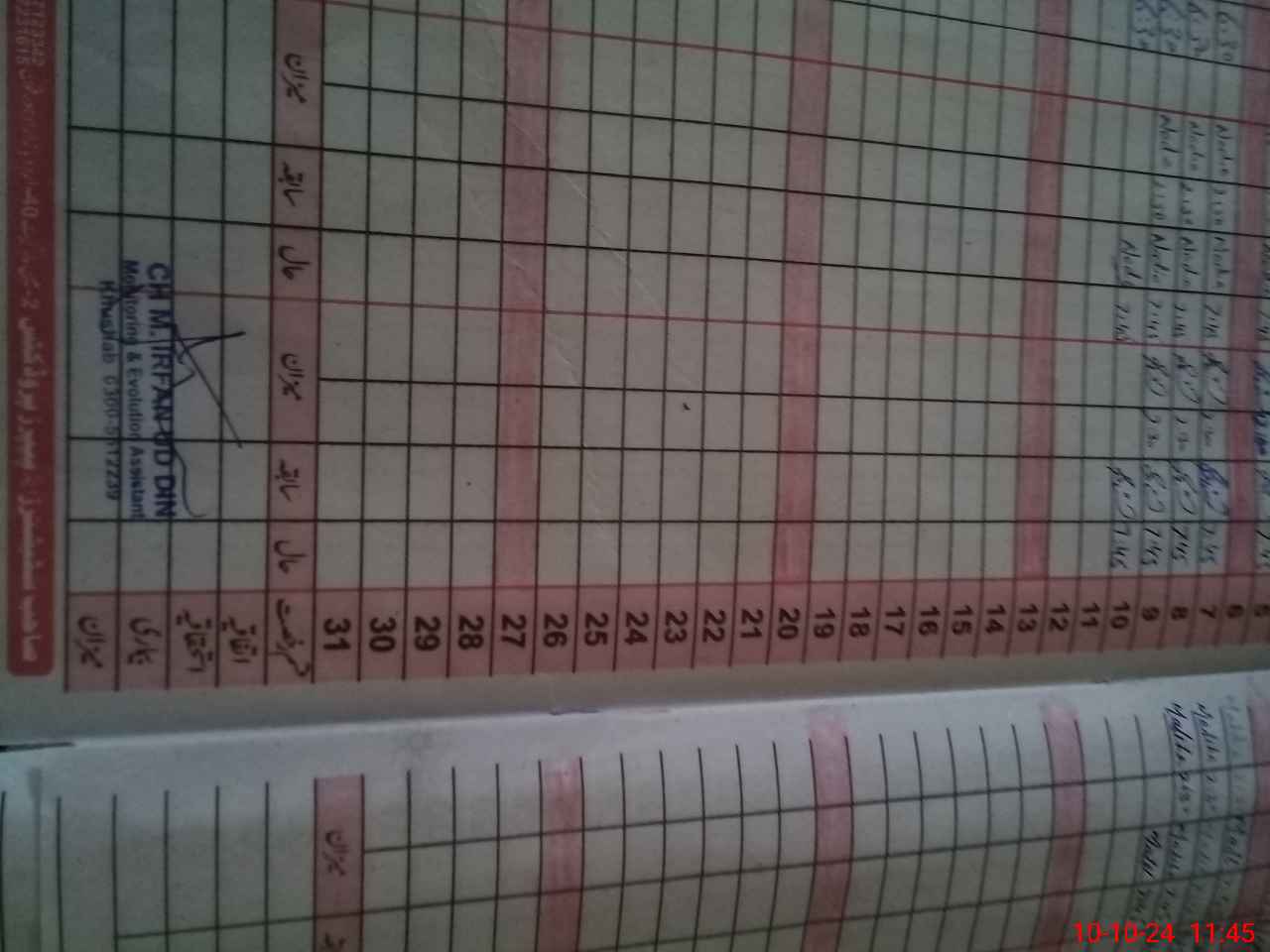 | CNIC | Full Name | Designation | R/C | Absence During Last Calender Month |