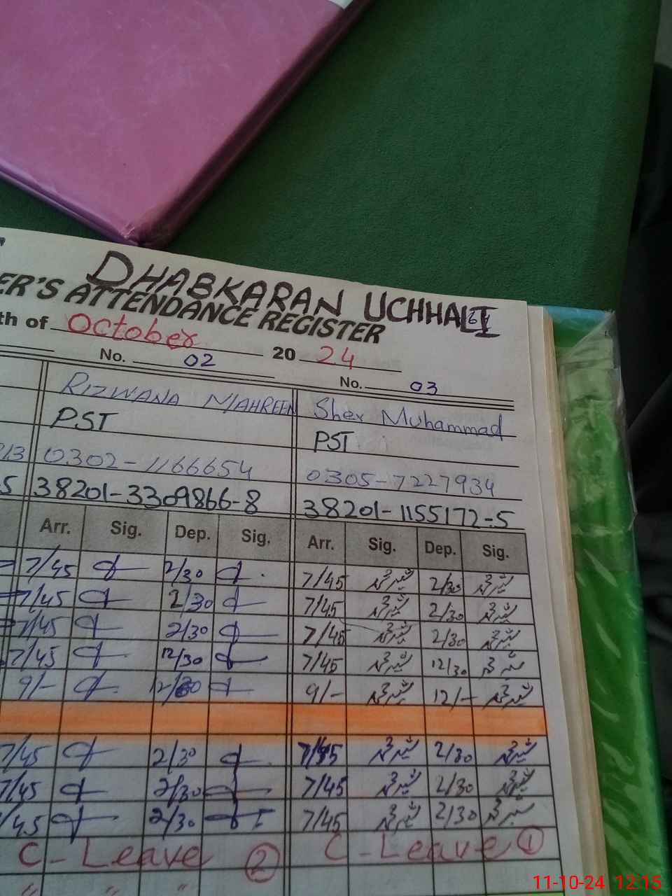 | CNIC | Full Name | Designation | R/C | Absence During Last Calender Month |