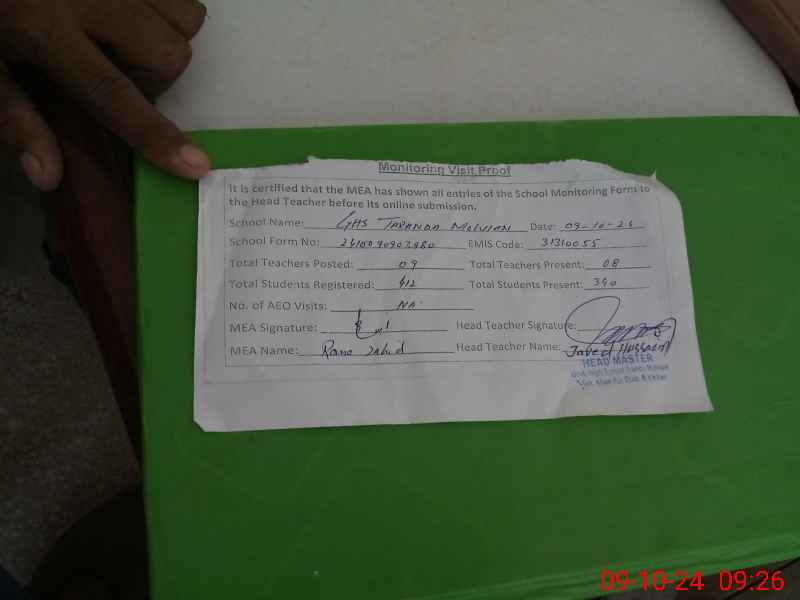 | EMIS Code: 31310055 | Name of School: GHS TARANDA MOULVIAN | |||