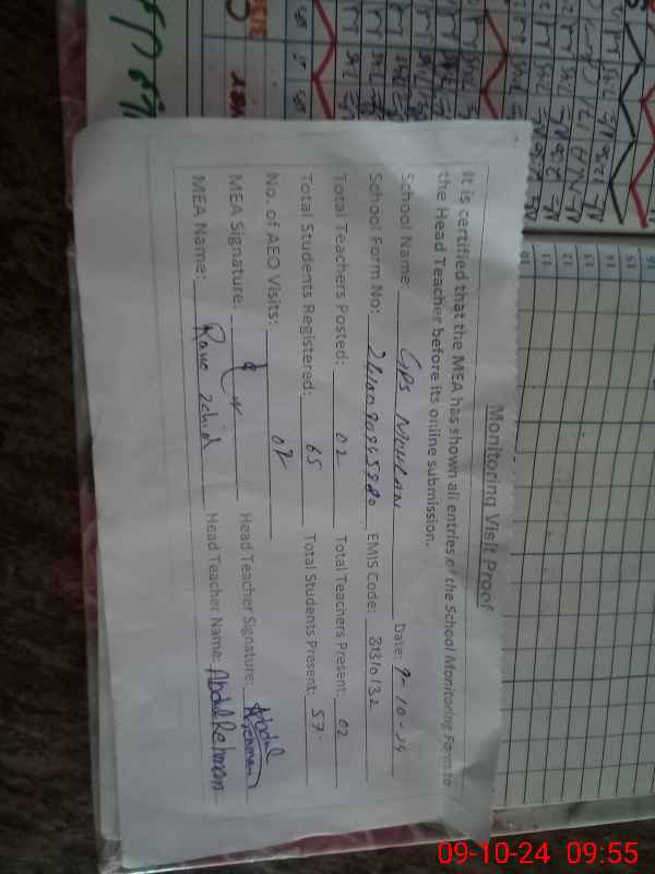 | Certified that this School was Inspected by the Undersigned MEA/DMO Today and the Information Stated Above is as Per Record. | |||||