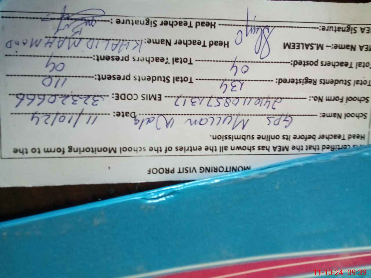 | Name: Kh**** Me**** Designation: (School Headmaster's/Headmistress's) Est Phone/Cell Number: 03**** |