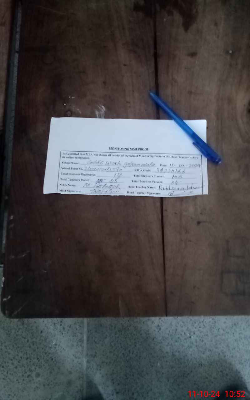 | Attendance Register | Head Teacher | MEA with School | Visit Proof |
