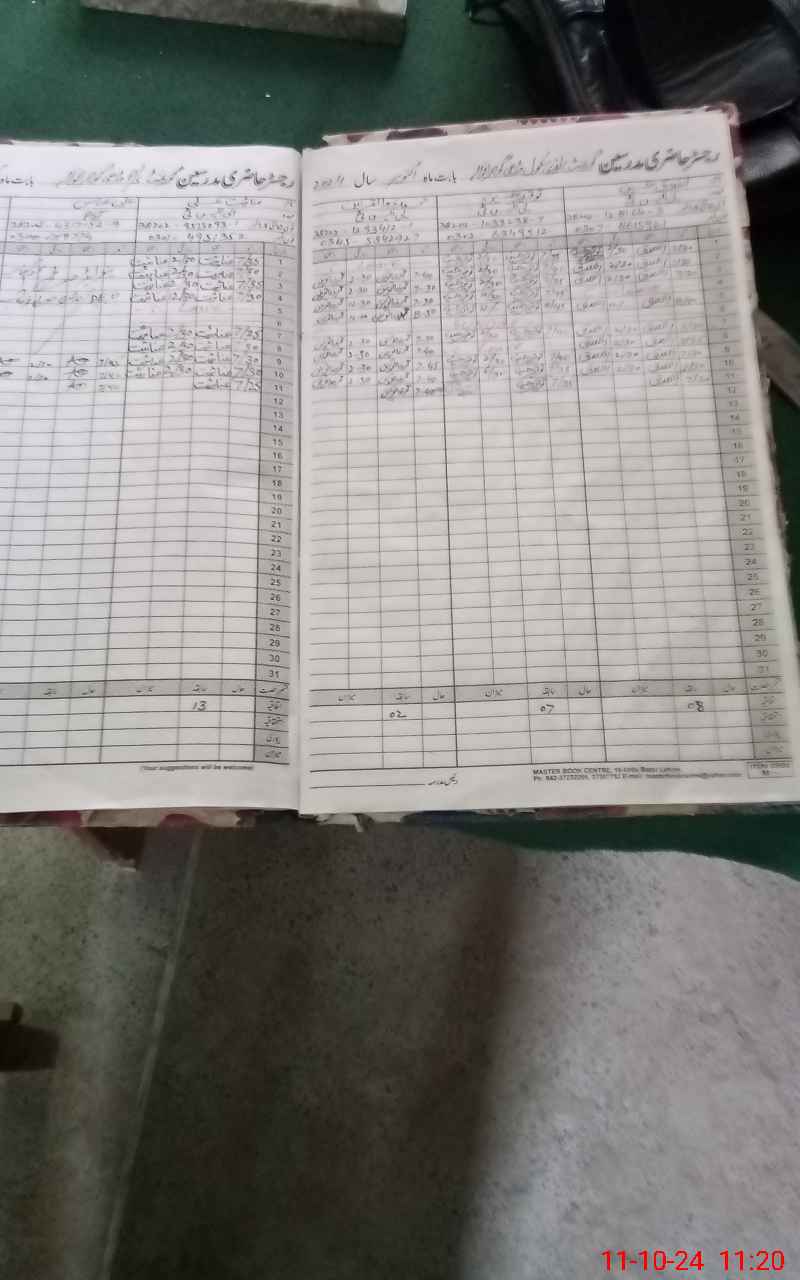 | CNIC | Full Name | Designation | R/C | Absence During Last Calender Month |