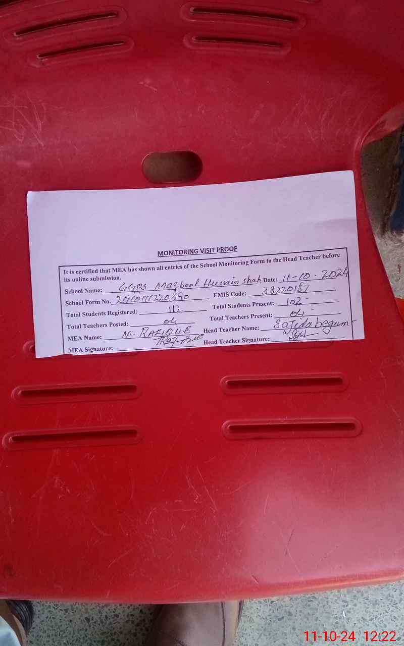 | EMIS Code: 38220157 | Name of School: GGPS MOHALLA MAQBOOL HUSSAIN SHAH | |||