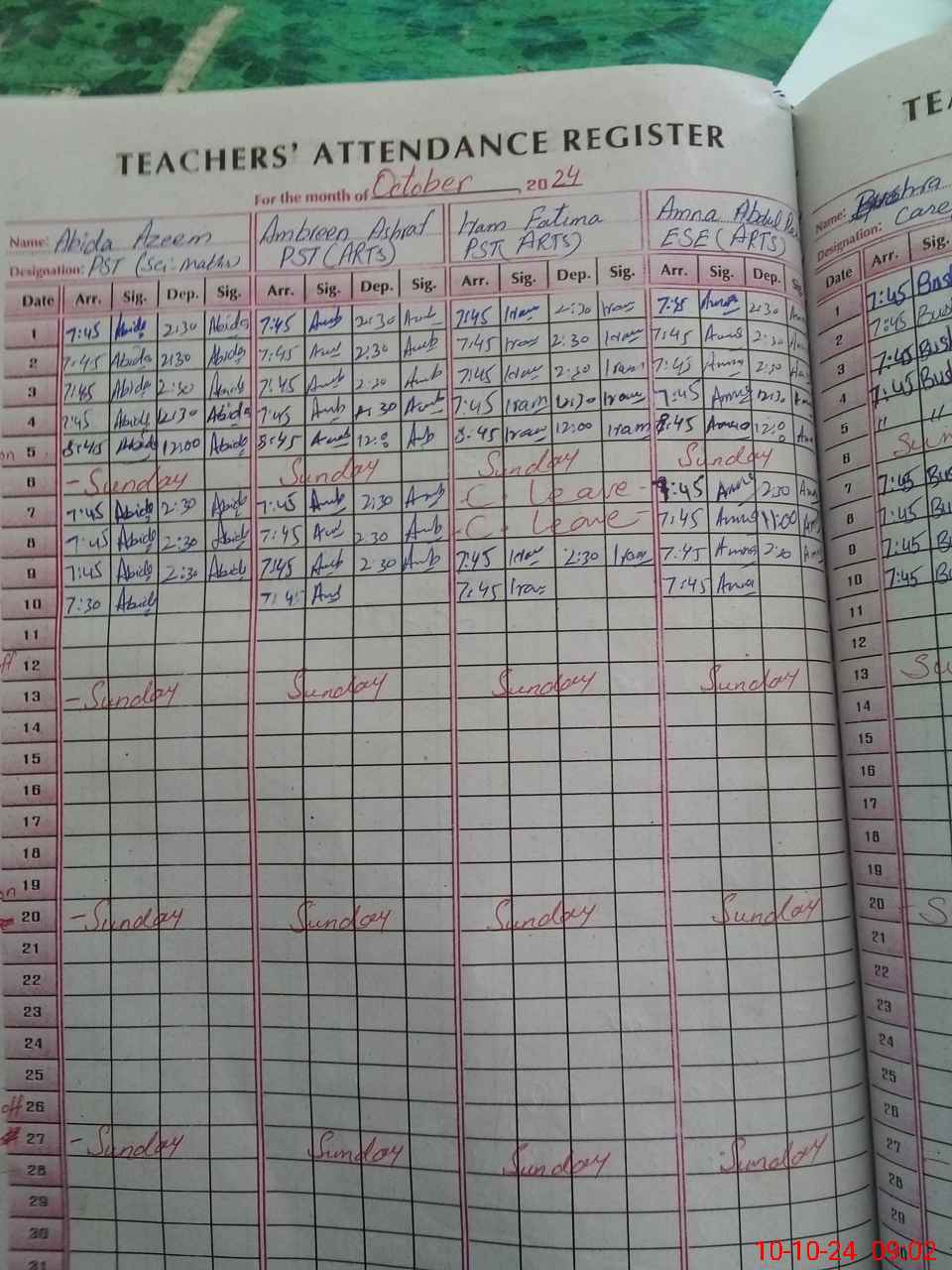 | Leave | Duty | Absent | Maternity | Medical | Ex- Pak |
