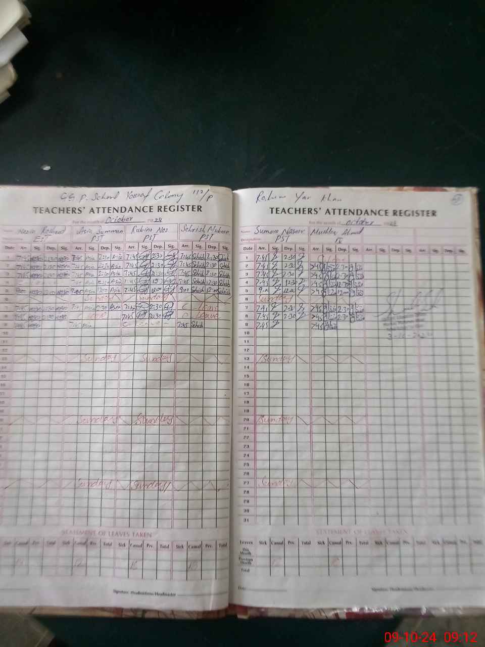 | 31**** | Ro**** Na**** | PST | Regular | 0 | 0 | 0 | 0 | 0 | 0 | 0 | 0 | 0 | Casual |
