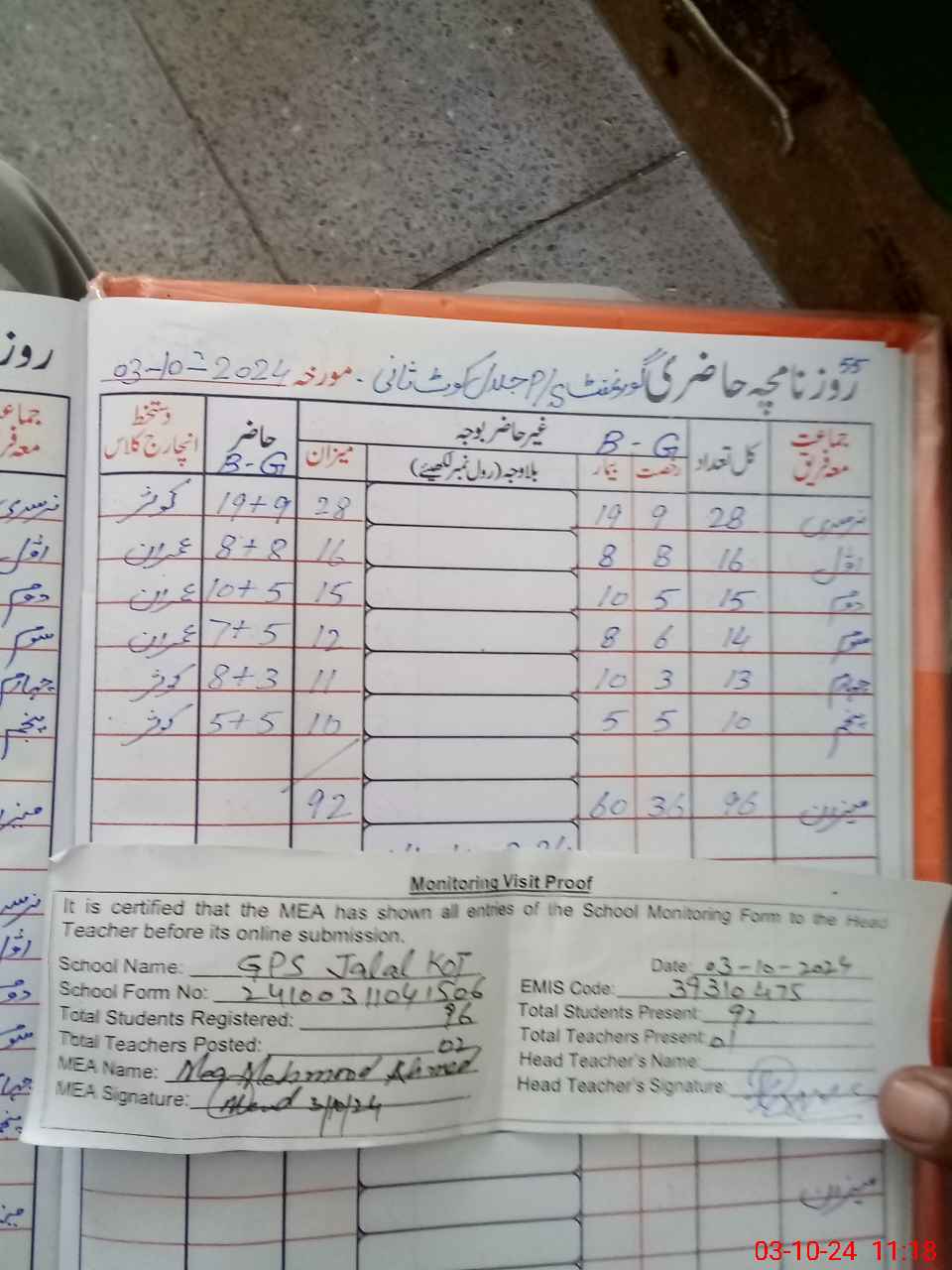 | EMIS Code: 39310475 | Name of School: GPS JALAL KOT SANI | |||