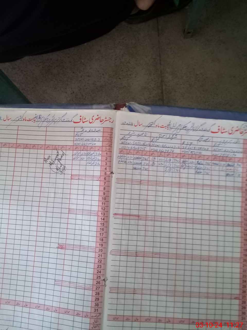 | CNIC | Full Name | Designation | R/C | Absence During Last Calender Month |
