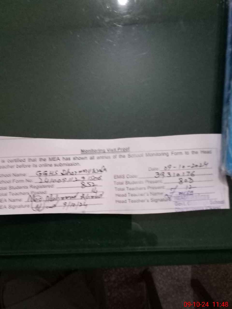 | Certified that this School was Inspected by the Undersigned MEA/DMO Today and the Information Stated Above is as Per Record. | |||||