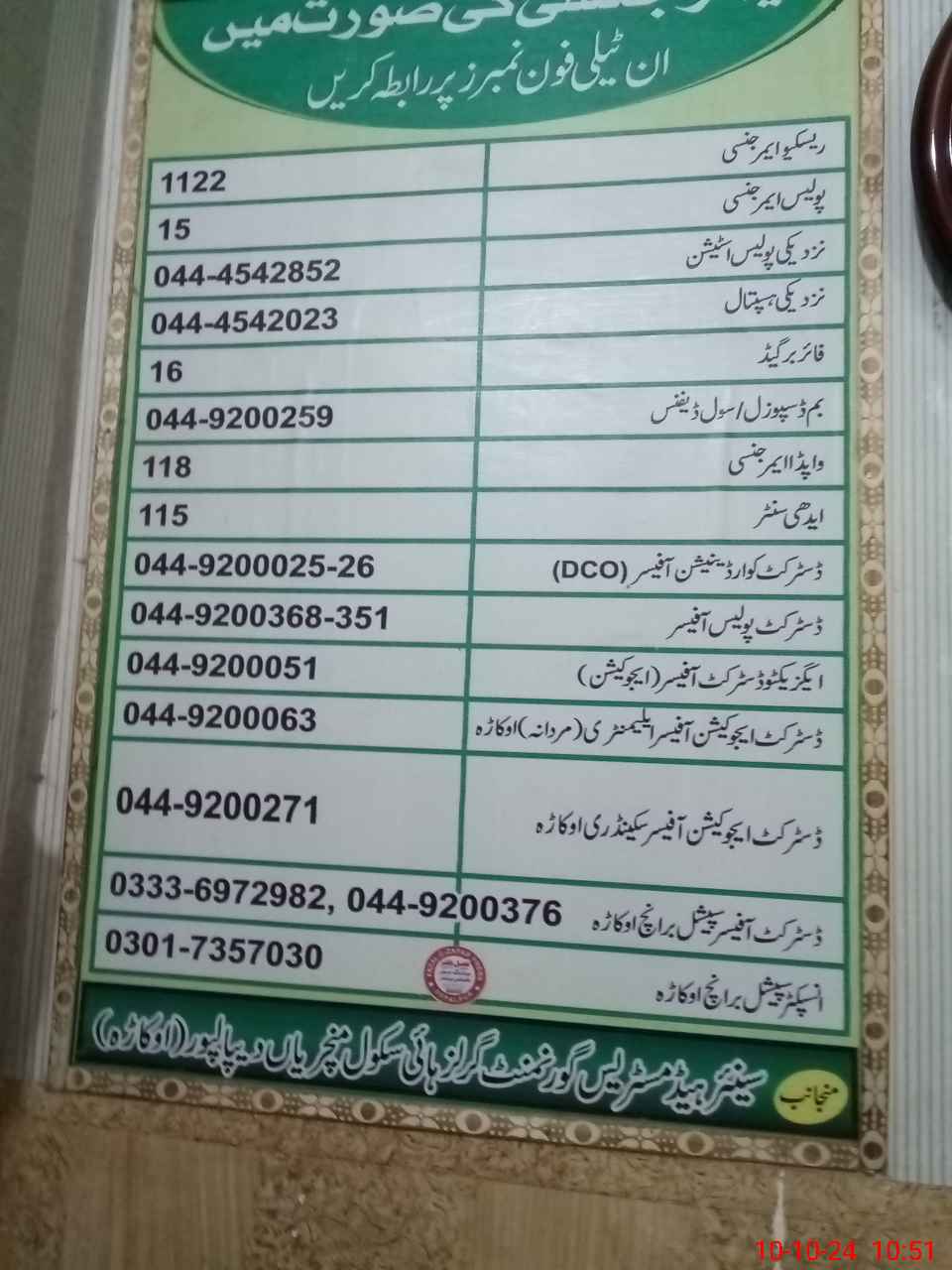 | District: OKARA | Tehsil: DEPALPUR | Markaz: SECONDARY-WING | Level: High | |