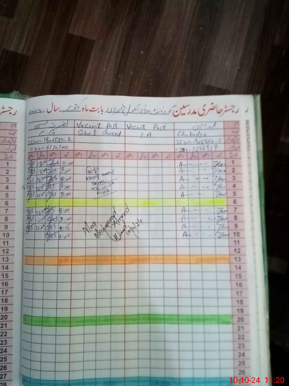 | CNIC | Full Name | Designation | R/C | Absence During Last Calender Month |