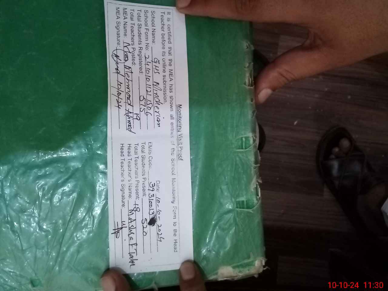 | Attendance Register | Head Teacher | MEA with School | Visit Proof |