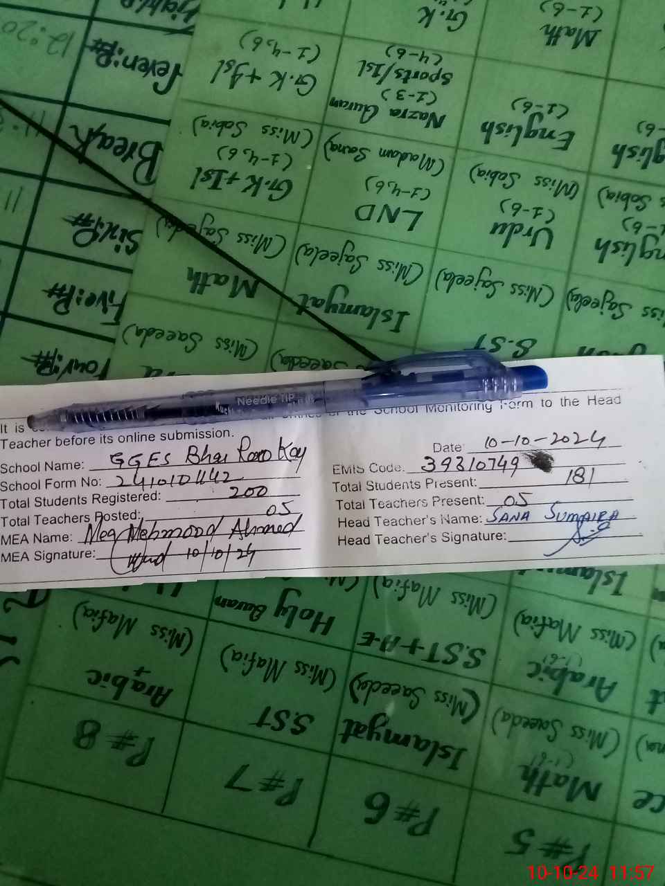 | Attendance Register | Head Teacher | MEA with School | Visit Proof |