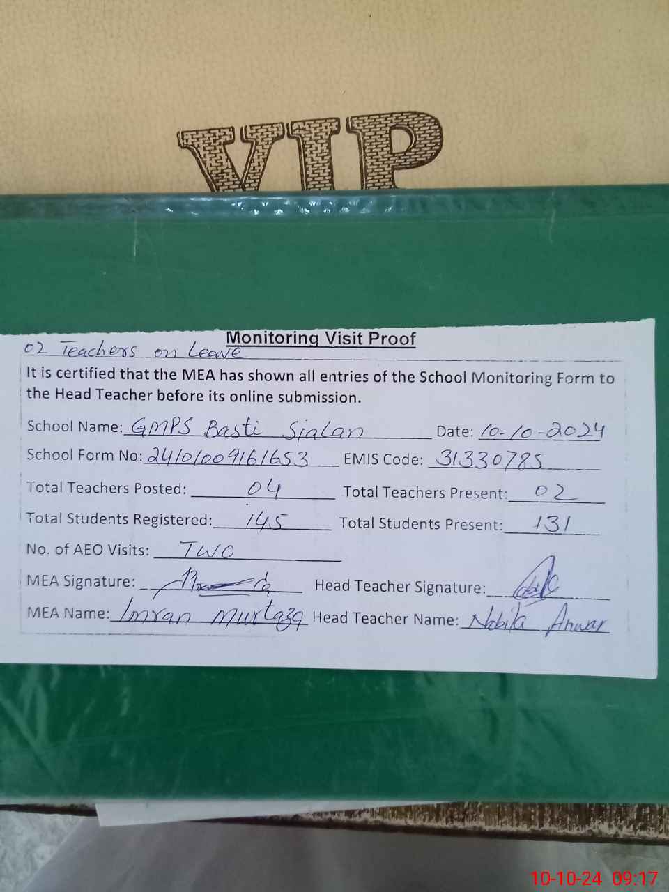 | EMIS Code: 31330785 | Name of School: GMPS BASTI SIALAN | |||