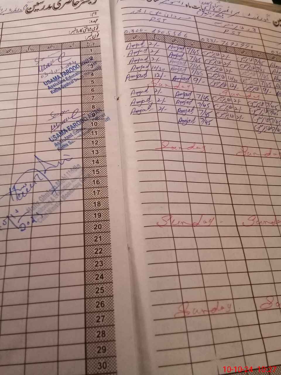 | CNIC | Full Name | Designation | R/C | Absence During Last Calender Month |