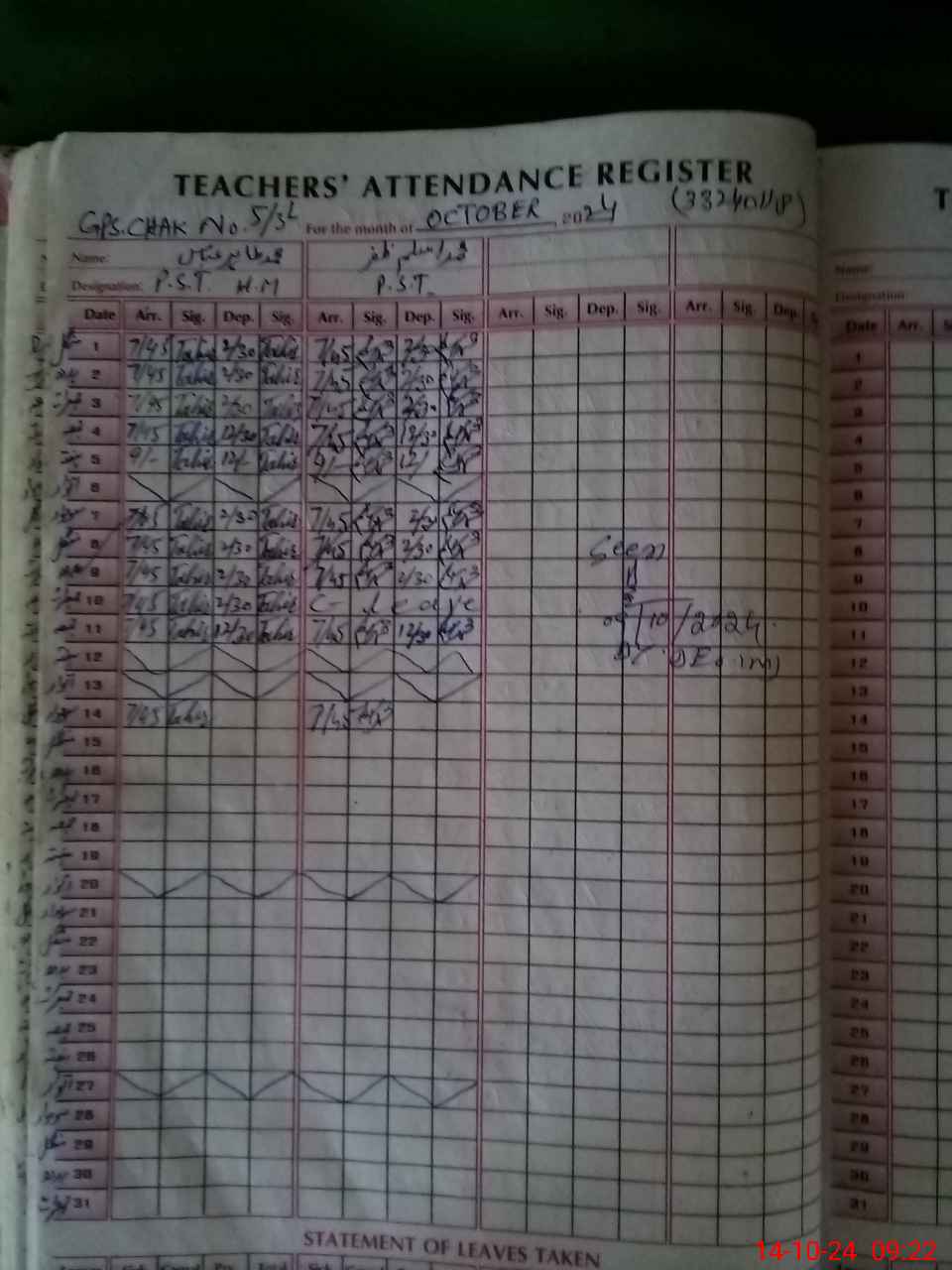 | Name: MTA**** AB**** Designation: (School Headmaster's/Headmistress's) PST Phone/Cell Number: 03**** |