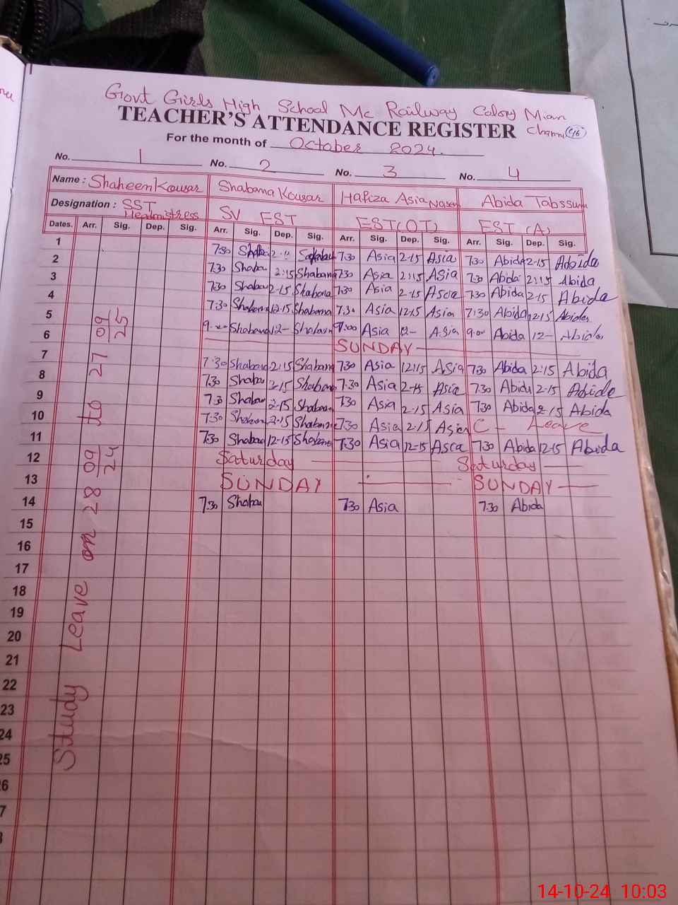 | Leave | Duty | Absent | Maternity | Medical | Ex- Pak |