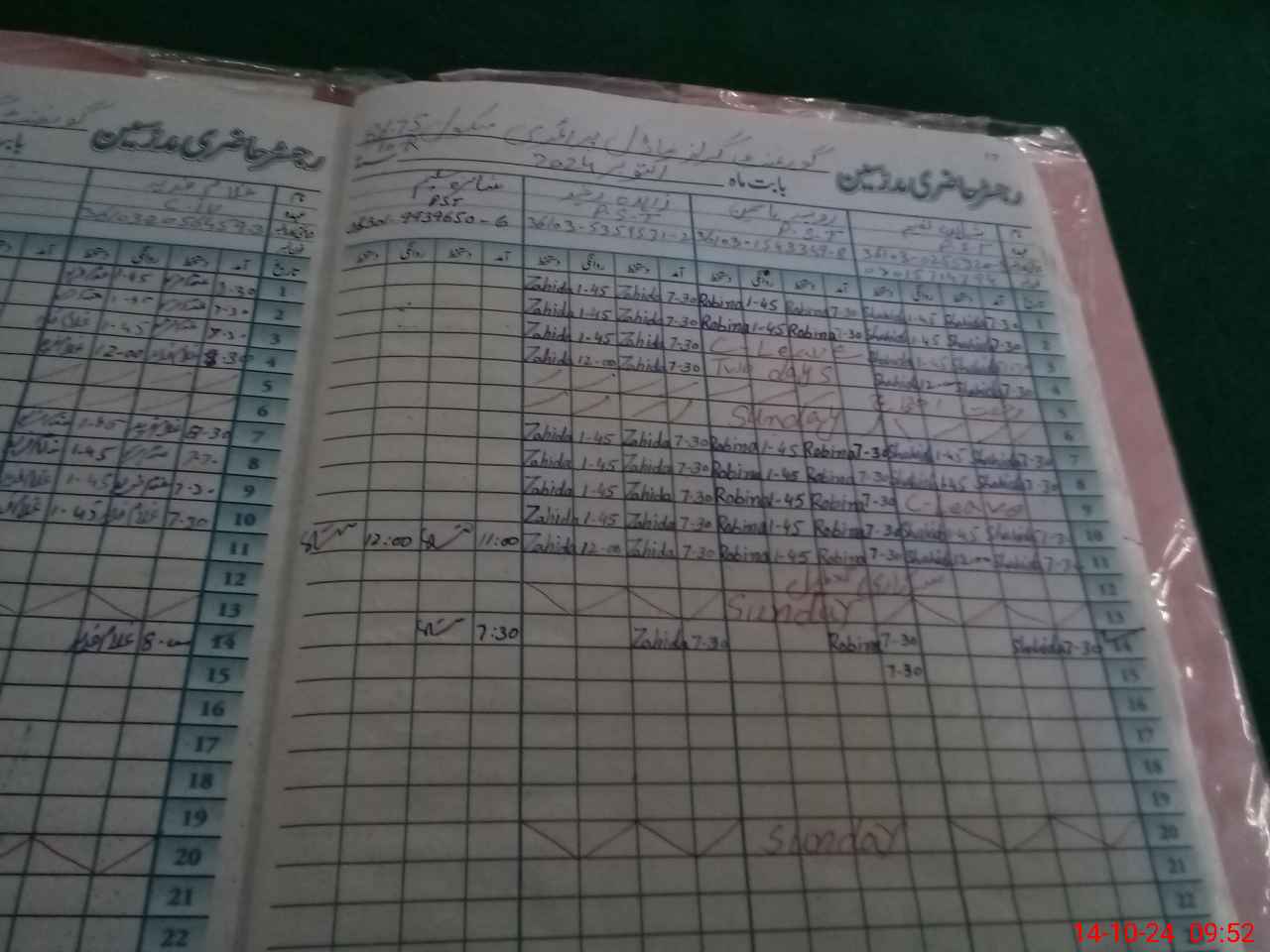 | CNIC | Full Name | Designation | R/C | Absence During Last Calender Month |