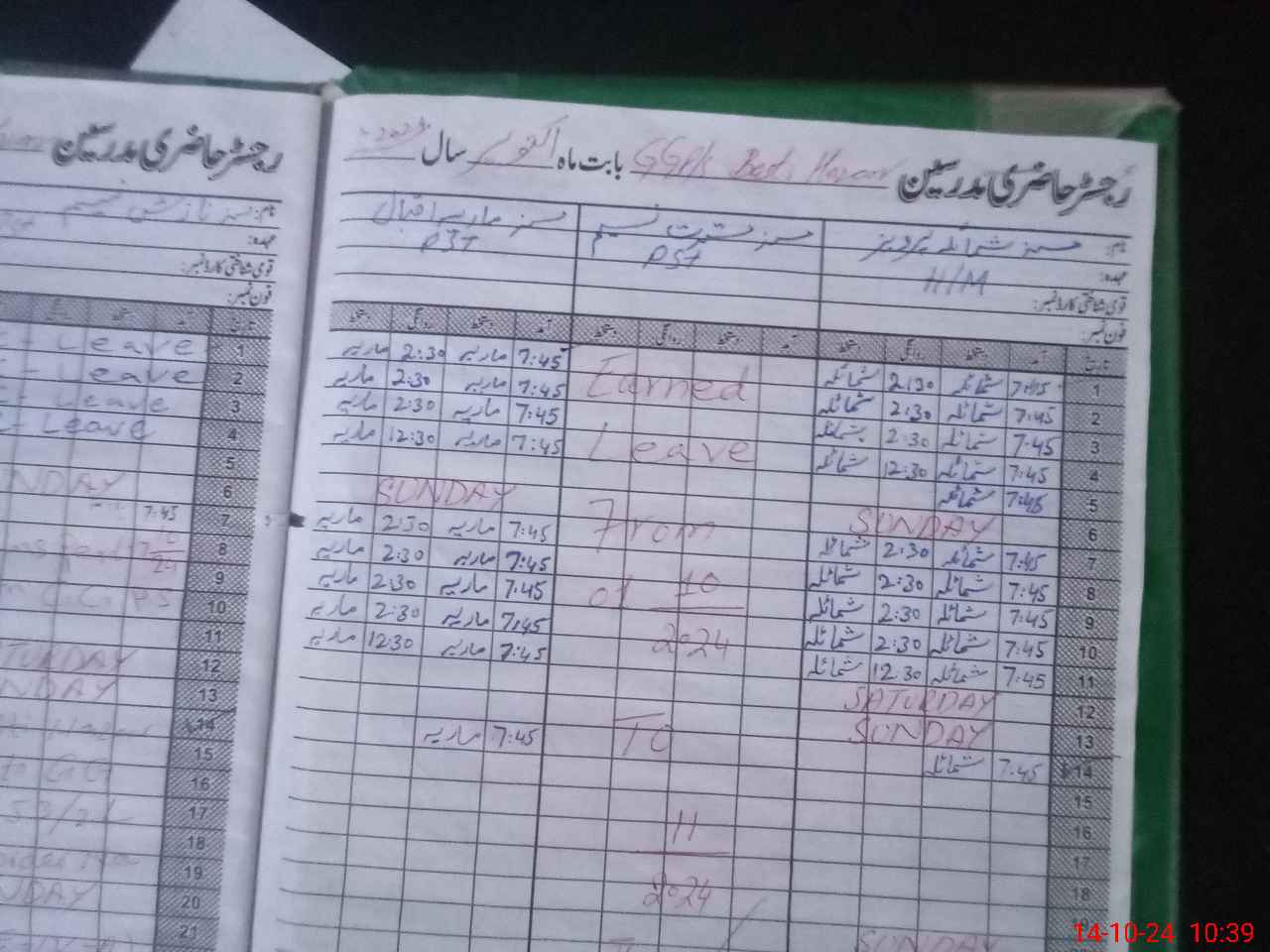| 35**** | So**** Ak**** | PST | Regular | 10 | 0 | 0 | 10 | 0 | 0 | 0 | 0 | 0 | Maternity |