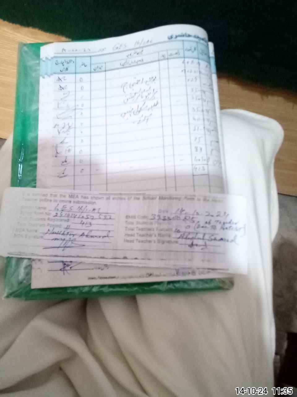 | EMIS Code: 39330085 | Name of School: GES CHAK NO. 16/1-AL | |||
