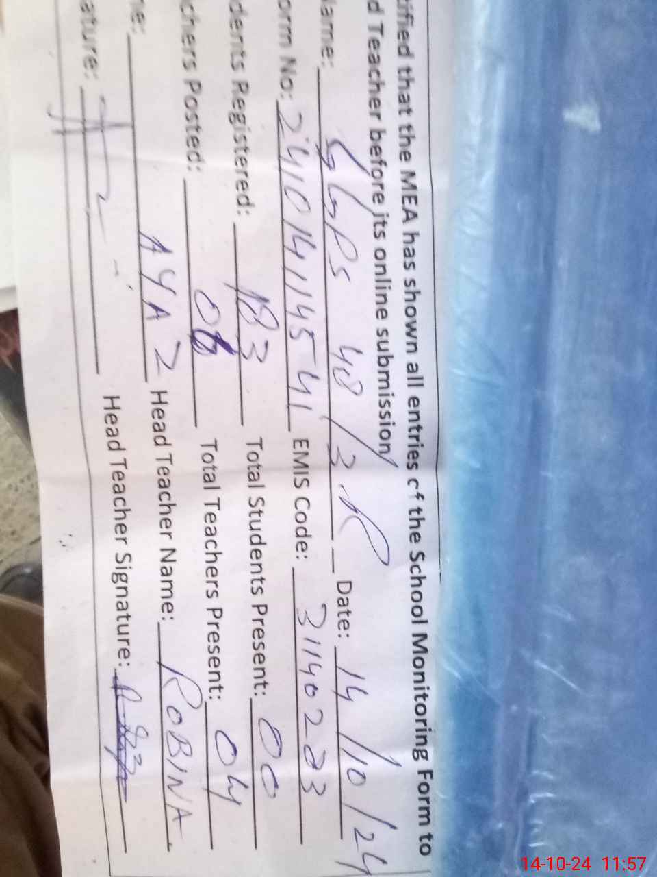 | Name: Na**** Ko**** Designation: (School Headmaster's/Headmistress's) Pst Phone/Cell Number: 03**** |