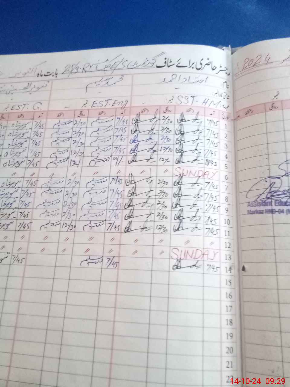 | CNIC | Full Name | Designation | R/C | Absence During Last Calender Month |
