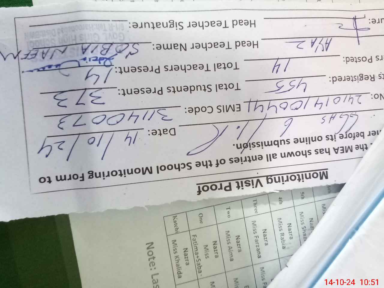 | EMIS Code: 31140073 | Name of School: GGHS CHAK NO 6/1-R | |||