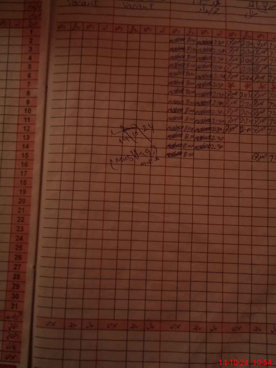 | CNIC | Full Name | Designation | R/C | Absence During Last Calender Month |