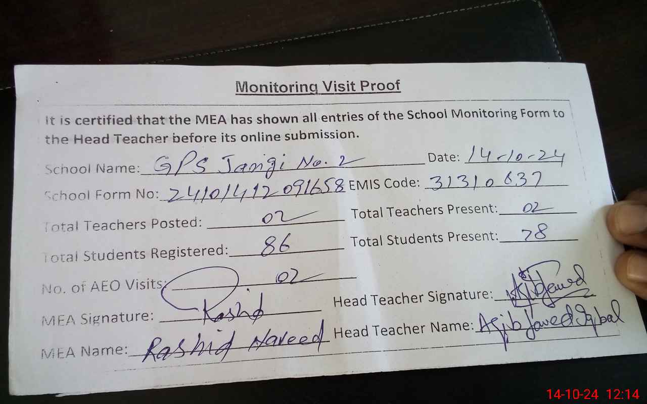 | EMIS Code: 31310637 | Name of School: GPS JANGI NO. 2 | |||
