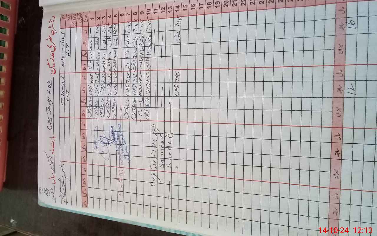 | CNIC | Full Name | Designation | R/C | Absence During Last Calender Month |