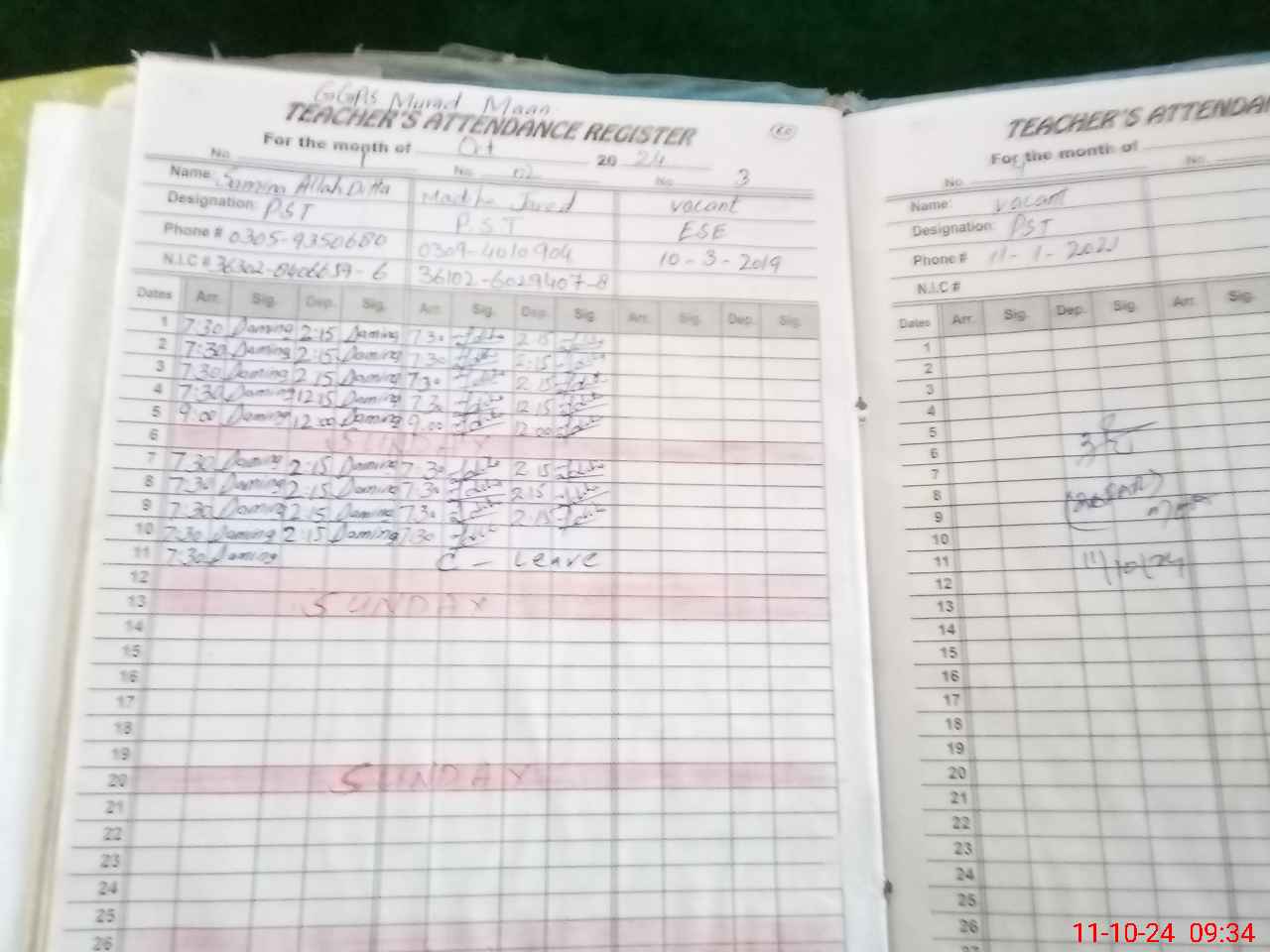 | Name: Sa**** Al**** Di**** Designation: (School Headmaster's/Headmistress's) ESE Phone/Cell Number: 03**** |