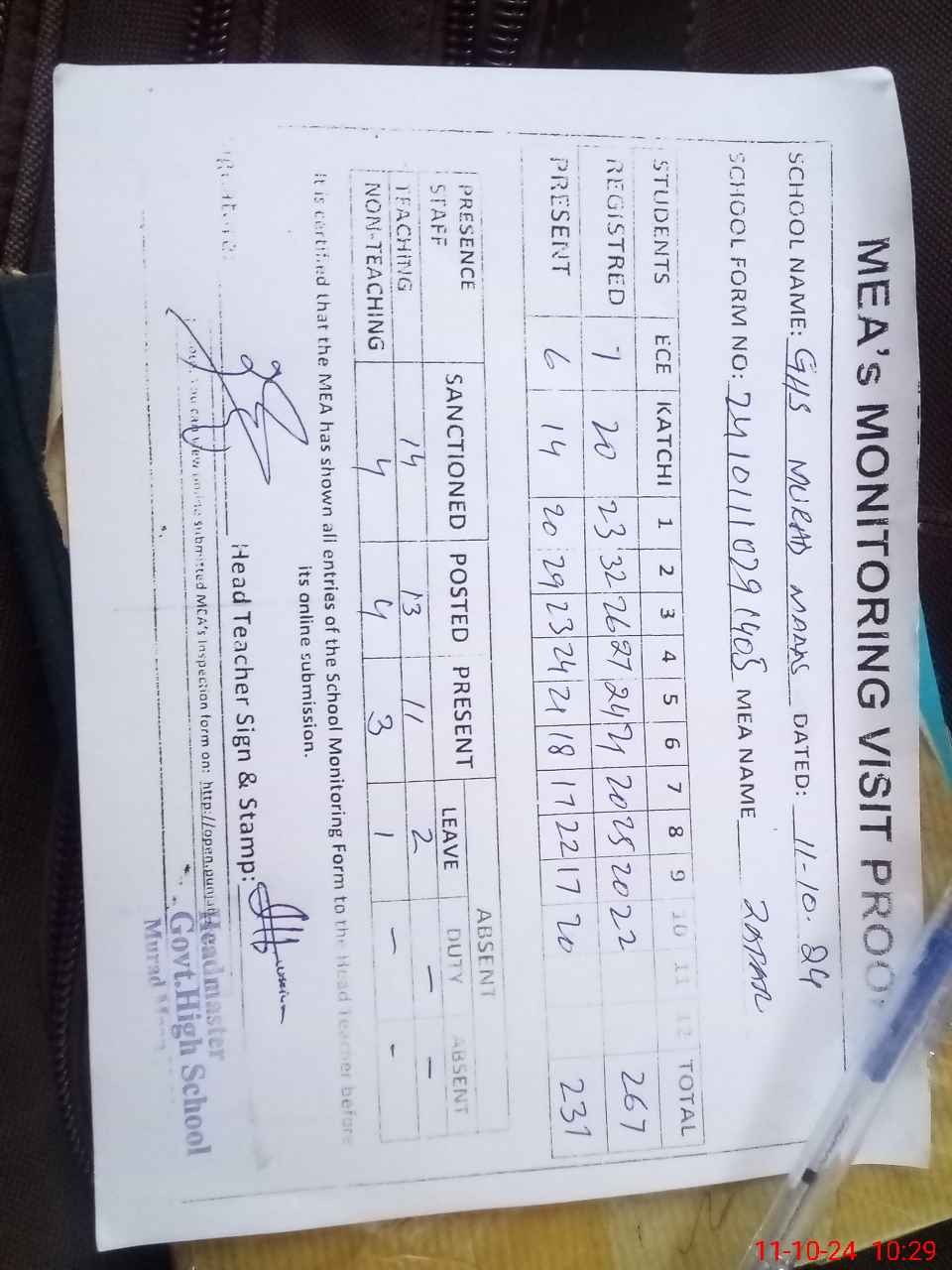 | EMIS Code: 36410062 | Name of School: GHS MURAD MAAN, SARAI SIDHU | |||